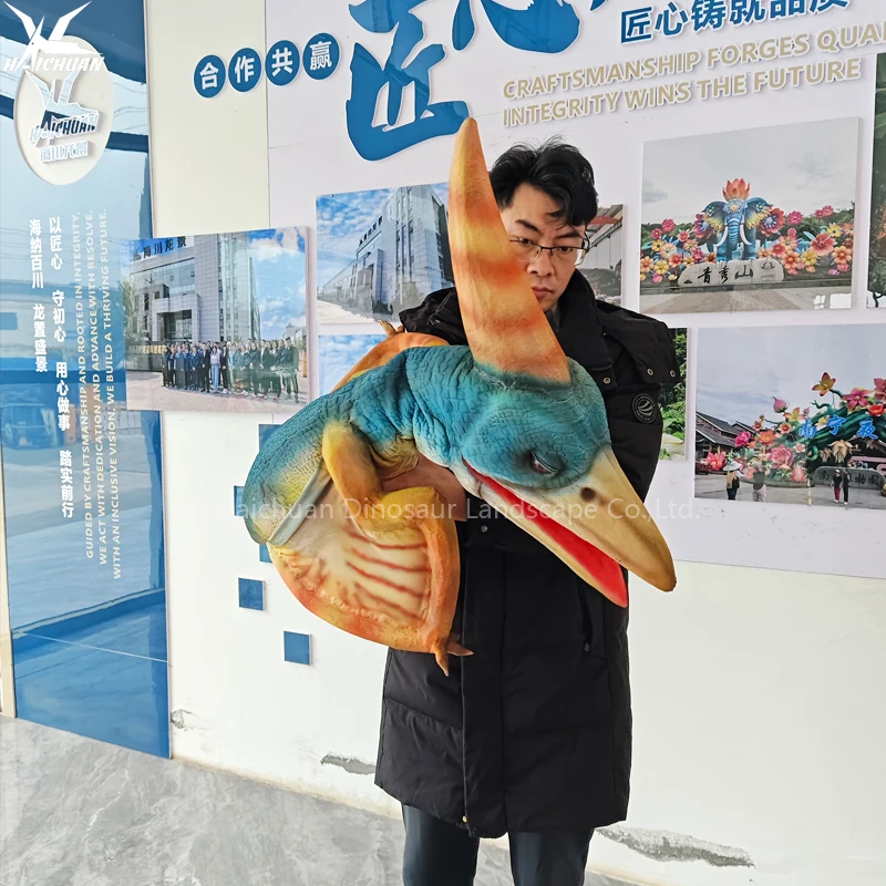 Realistic Baby Dinosaur Puppet Costume Human Hand-control Eyes Blink Mouth Open Animatronicos Pterosaur Dinosaurio Hand-puppet